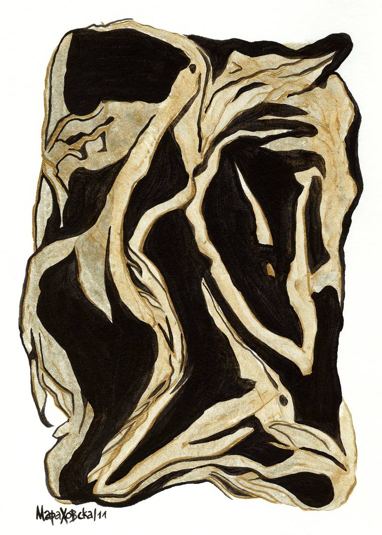 ORIGINAL PAINTING "HOMUNCULUS" (Acrylics bronze&black, Water color paper, 21x14,8 cm) by Maria Marachowska 2011, including frame with glass