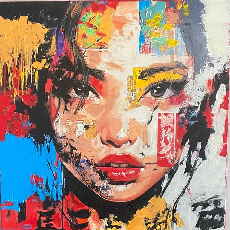 POPART WOMAN ARTSY ACRYLIC ON CANVAS 50 X 50 CM UNIQUE POPART STYLE MADE IN SWITZERLAND