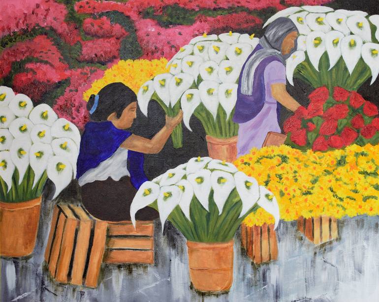 Some times walking on the streets we see people and make us pause and think to ourselves - what's about? on this ethnic paint which ones look as mother and daughter making arrangements at their shop, that is surrounded by quite a lot of beautiful flowers , and the place looks gorgeous, colorful, an...