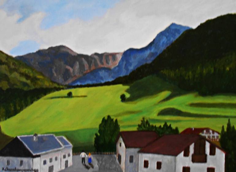 Artwork inspired from my travel in Swiss in Spring 2023 . View was from my hotel's balkony . Materials used Canvas paper 320gr 30X40cm . I left 1cm around subject blank . So real dimensions of artwork are 28X38cm Artist grade colors from Winsor and Newton are used One of a kind artwork signed on...