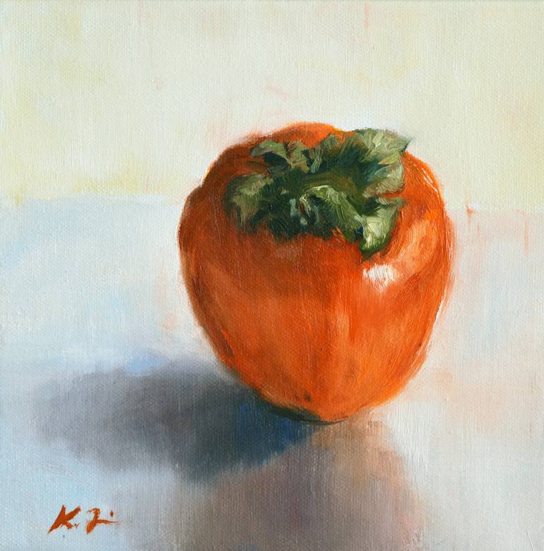 This is an original oil painting on cavas depicting hachiya fruit still life. It is painted from life setting using natural light. No frame needed. Ready to hang.