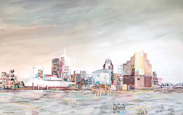 Inspiration from City of Hamburg and the Harbour the Collage style is the expression of my multicultural background and shows the time we live in