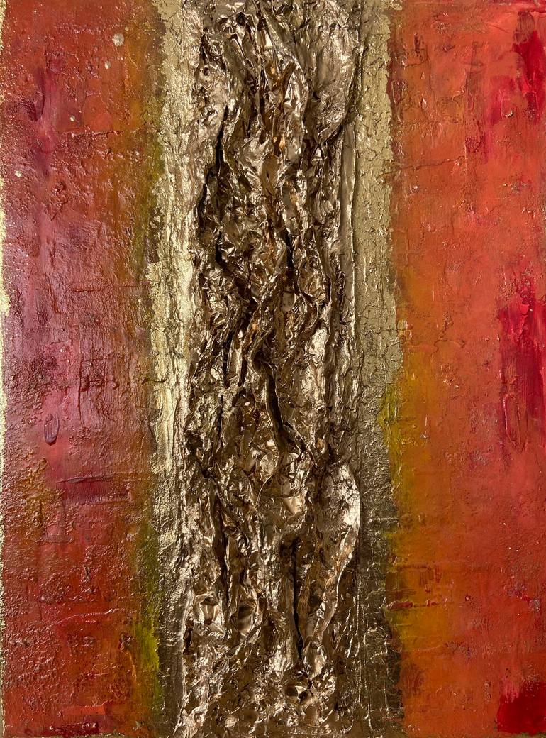 Hakuna Golda is a celebration of freedom, resilience and opulence - where textured abstraction meets golden energy. Inspired by the phrase "Hakuna Matata" (no worries) - this piece speaks to a life lived without fear, anchored in abundance. The sculptural center evoked earth cracked by heat and tim...
