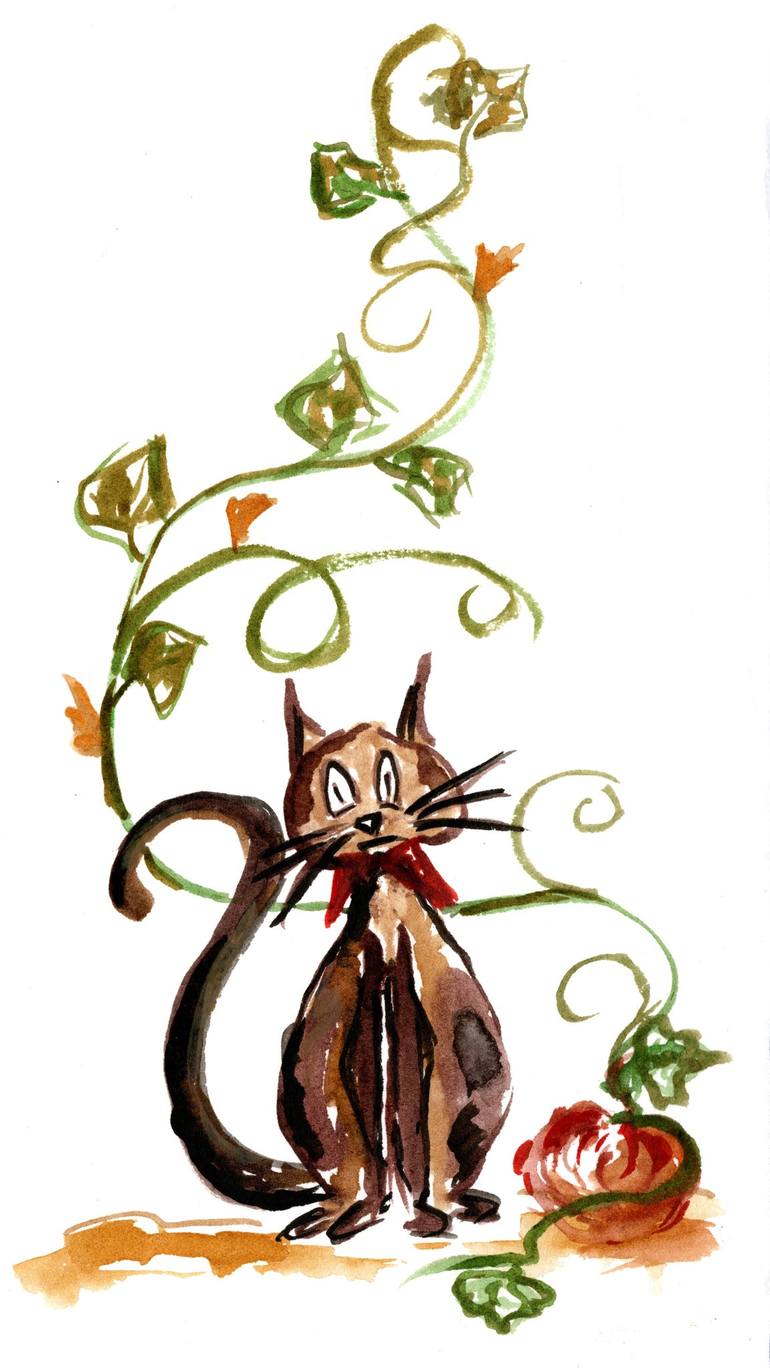 Artist- Anna Berkova Illustration of cat on halloween