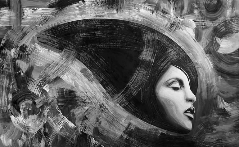 The fifth opera in the series "Hallucinating". An opera from the series of elongated heads of women, which treats her own erotic-artistic vision.