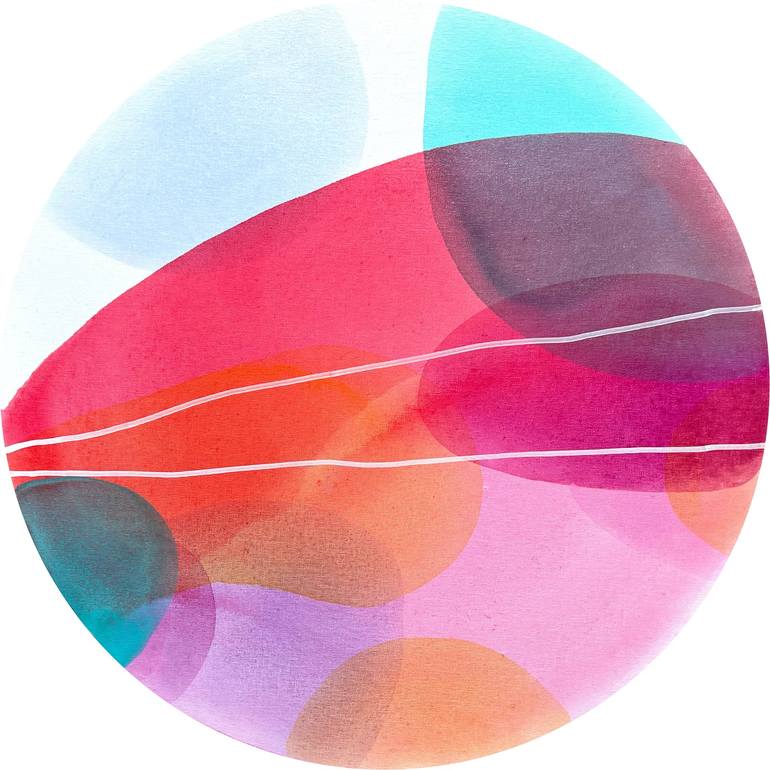 The joyous color palette in the shape of balls or bubbles in the paintings can remind of children's mischievousness when playing with a bubble blower. The author deliberately chose a canvas in the shape of a circle for these works. You can feel the immediacy, spontaneity and playfulness she approach...