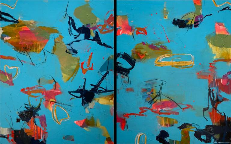 When I feel I've overworked a canvas, I start eliminating what I don't want on the canvas by deductive painting. I often end up with a result that could not have happened intentionally and I like that. That's why I call myself the "accidental artist".