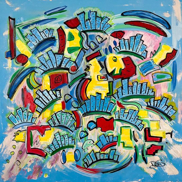 Part of the Smart City Art Collection by Dorothea Sandra. This painting speaks to humanity's ability to create smart and sustainable cities in the future. In this vibrant swirl of color and form, I poured my excitement and hope into the vision of sustainable urban life. Bright blues, passionate red...