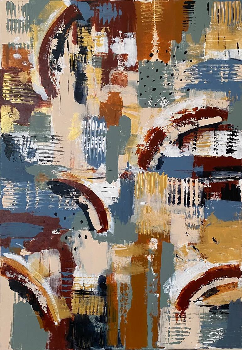 The second painting with abstract shapes and rainbows is done in warm autumn colors. I painted a picture in a beautiful place, with joyful thoughts, surrounded by nature, blooming lavender and many butterflies. I believe that the painting will bring joy and warmth to its future owner.