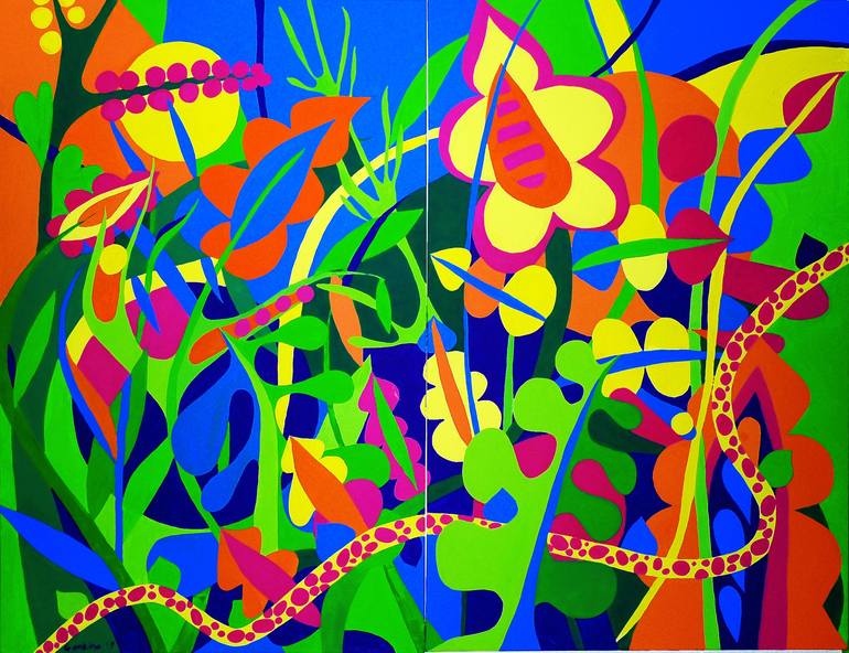 I was born 1986 in Ukraine, studied in Kiev national institute of applied art and design named of M. Boychuk, worked as a designer. Now living in Germany. I can describe my current art in three words: HAPPINESS. FULLNESS. COLOR. In my current artworks I see a man and the nature as one whole thing, because we are all part of it, as well it is - a part of us. Modern man is so rarely feels happy, because he has lost touch with nature. For me Nature it's a source that gives peace and harmony, filled with energy and happiness. I want to convey through my paintings feeling of happiness, what we had experienced in childhood, with the simplicity and wholeness of perception.