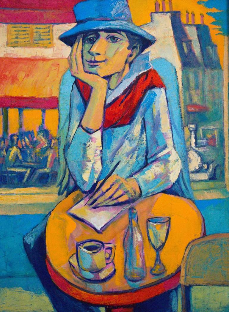 Allegorical composition presenting romantic Parisian atmosphere where a young artist creates base for his artworks. Original is painted on canvas with classic oil colors, finished with varnish. Technique used is classic oil paint with brush and spatula.