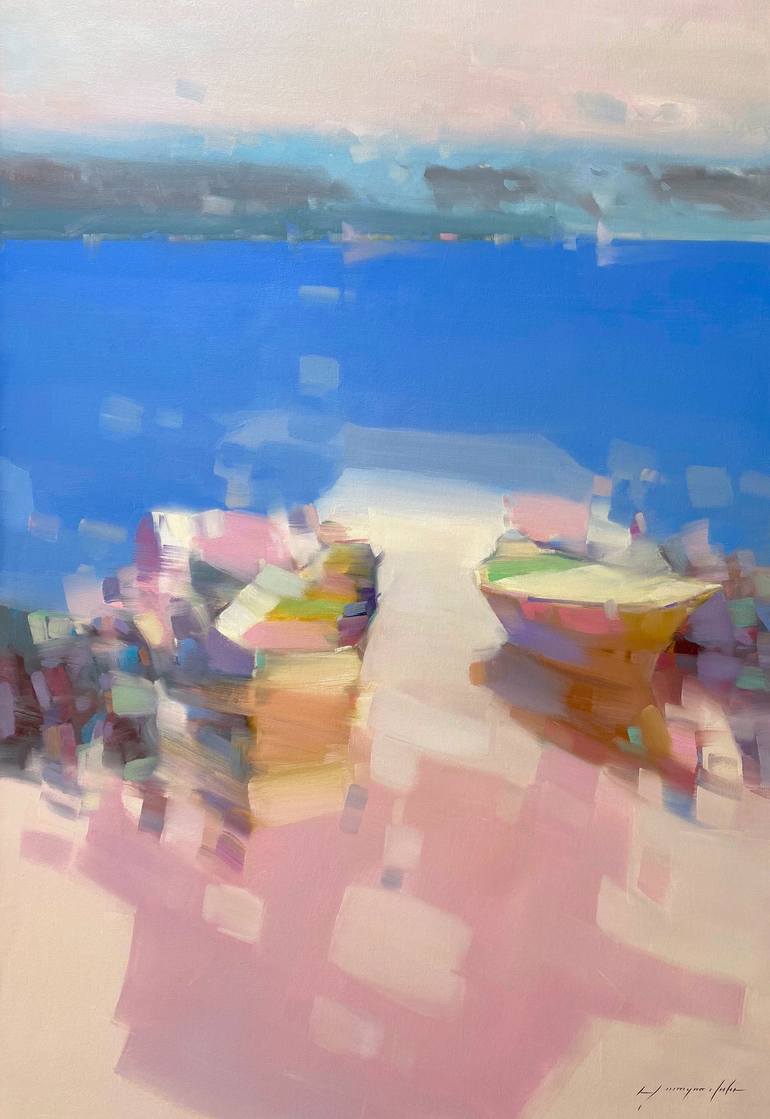 Artist: Vahe Yeremyan Work: Original Oil Painting, Handmade Artwork, One of a Kind Medium: Oil on Canvas Year: 2022 Style: Impressionism, Subject: Harbor, Size: 44" x 29.5" x 1'' inch, 112x75x2 cm, Unframed, Stretched on Wooden Bar, Gallery Wrapped, Ready to Hang. Yeremyan is an Armenian nat...