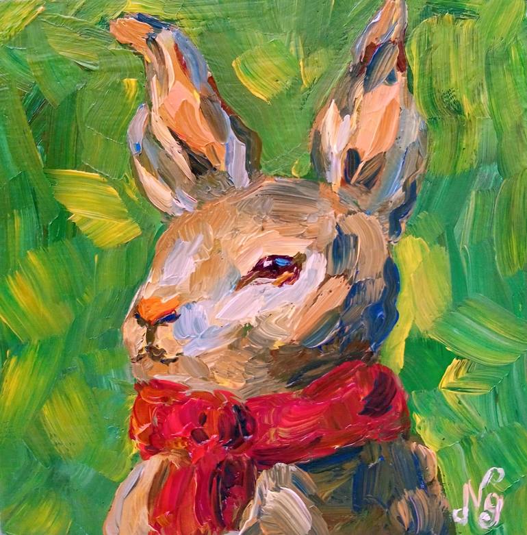 Hare Oil Painting is Canvas Rabbit on Green Impressionist Art. Small Rabbit Oil Painting is Original Art Animal Tiny Wall Art, Hare Impressionist Oil Painting Hare Artwork for Easter Oil Canvas Painting Green Art. This Impressionist Bunny Original Artwork is Semi Abstract Tiny Pet Portrait Oil Paint...