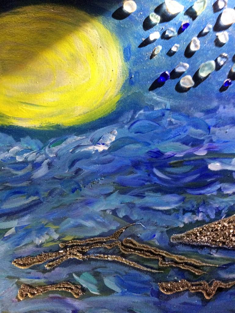 This was what the sky looked like during the Harvest Moon in Ohio. I incorporated the beach glass that I collected during the event as the stars in the sky.