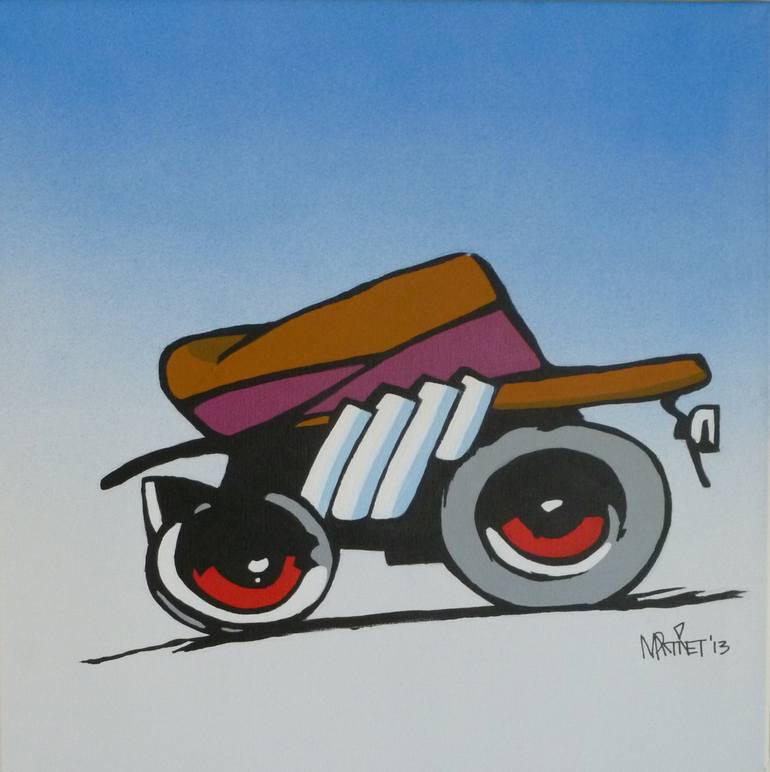 Bio: Mike Martinet is a lifetime resident of the southwest - California, Arizona and Nevada. • Mike's primary mediums are water-based paints and vector art graphics. • Currently employed as a web developer, Mike lives in Irvine, California. • Statement: "Most of my paintings and vector art pieces start as ballpoint and marker sketches. I fill pages of sketchbooks with tightly-clustered, random shapes connected together in an automatic-drawing style. They are often a combination of mechanical and biological elements - a channeled convergence of people and machines that I call 'robot expressionism'. • "My work is influenced by Hot Rod Cartoons, Mad Magazine, Zap Comix, Patrick Nagel, Peter Max and Keith Haring. • "My intention is to create dynamic designs that are thought-provoking and humorous."
