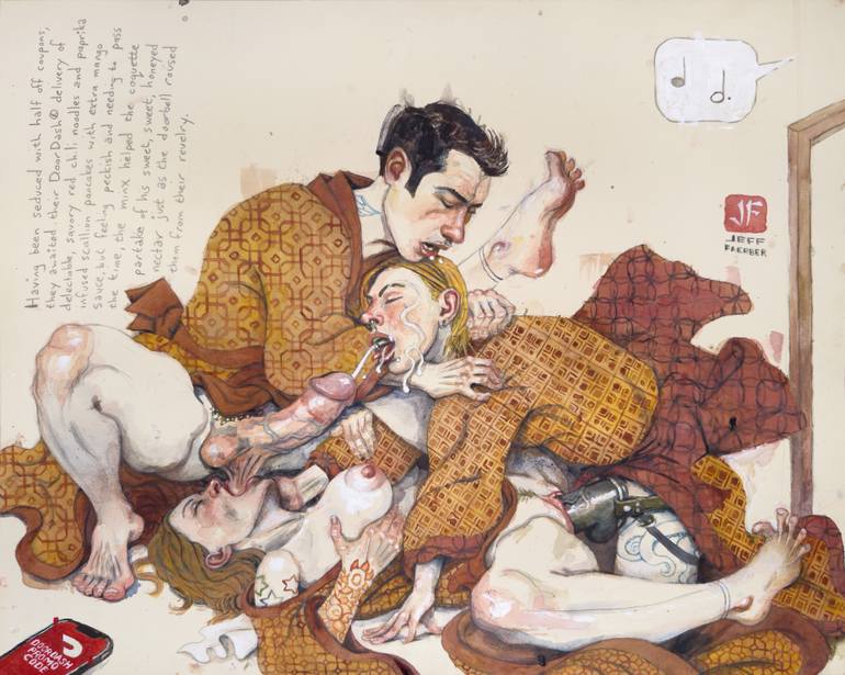 complete title: Having been seduced with half off coupons, they awaited their DoorDash® delivery of delectable, savory red chili noodles and paprika infused scallion pancakes with extra mango sauce, but feeling peckish and needing to pass the time, the minx helped the coquette partook of his sweet, ...