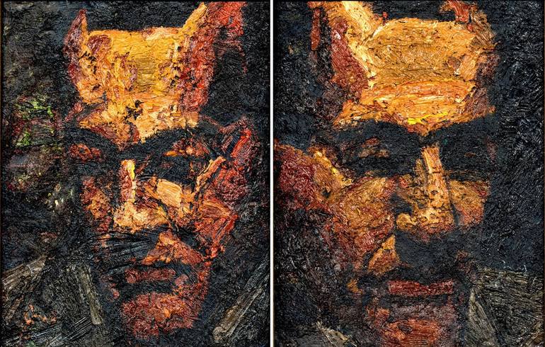 Oil colors on wood study for a head diptych