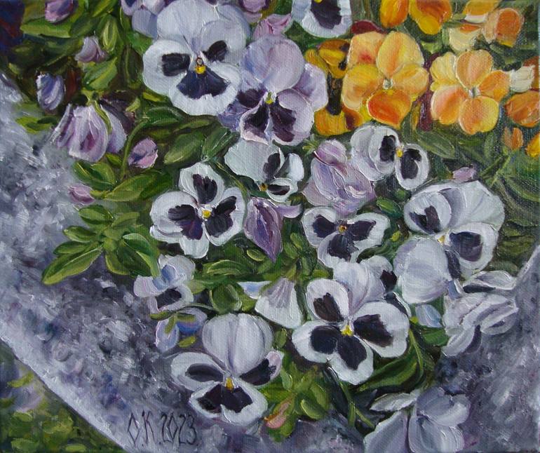 Original hand painted oil on canvas. Heartsease garden. Colorful, vivid floral scene... Made with love... Created with multiple layers of oil color. If you have any additional questions about this artwork, feel free to contact me!