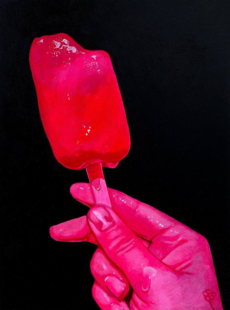 A summer oil color study featuring a hot pink, melting popsicle.