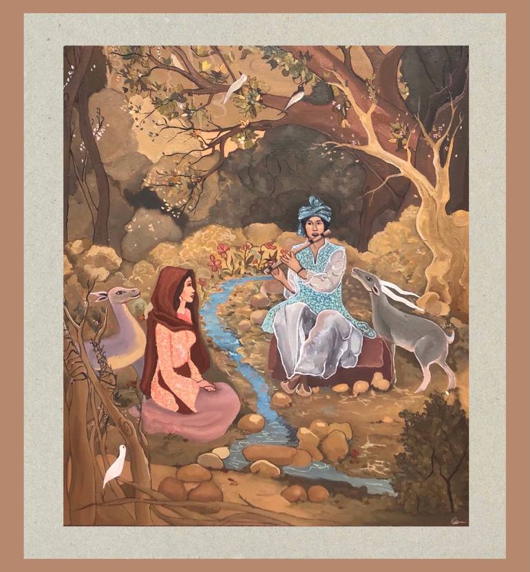 I painted this to go as a pair with the other Heer Ranjha piece you may find in my artworks. Both of these were sold to a very special client in 2022 however, I have sold prints of them since then at fairs and online, my Heer Ranjha pieces have been very signature in my collection.