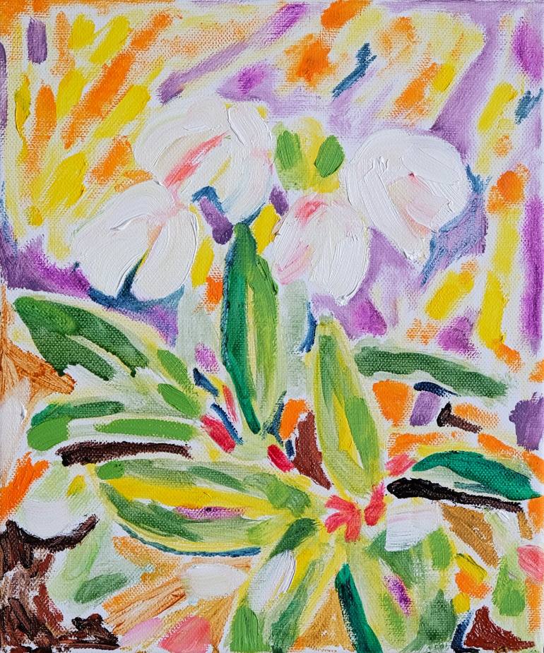 Hellebore in Spring is contemporary floral artwork in bright colors by Tamara Jare. Small Scale art for the nature lover, white flowers, nature, modern art flower, country side gardens, botanic art gift.