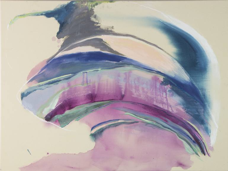 This painting on clear primed canvas was inspired by repetitious patterns we experience in our life, both positive and negative. The rounded sweeping motion of the mark-making continually pulls your eye back in, similar to habitual like patterns.