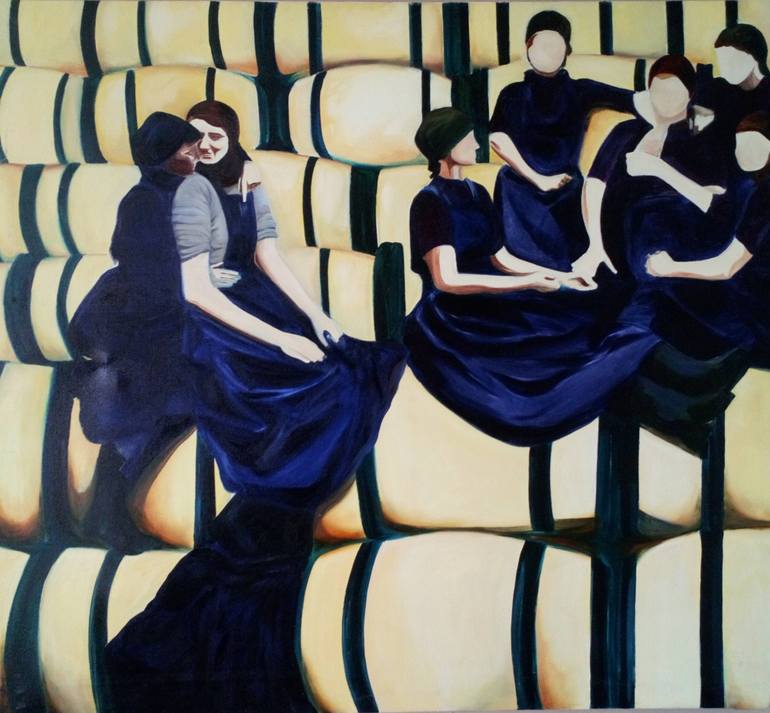 I fell in love with an old black and white image of these women taking a break from their work and felt compelled to make my own version. The obvious support and bonds that they share are inspiring and uplifting.