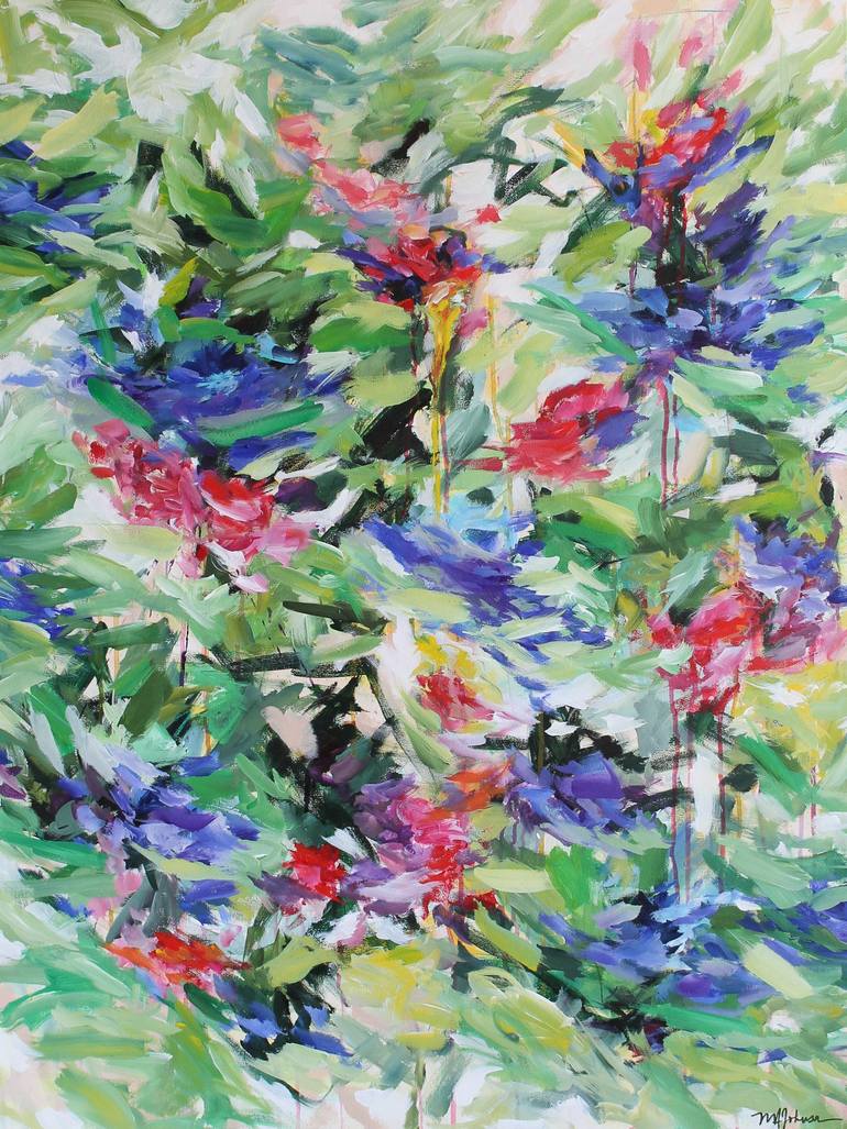 This vibrant abstract painting pays tribute to the expressive energy of Joan Mitchell’s work. Inspired after attending a retrospective in Baltimore, I channeled her bold, gestural brushwork and layered color into a composition that feels rich in movement and mood. Rich greens, deep indigos, and fier...