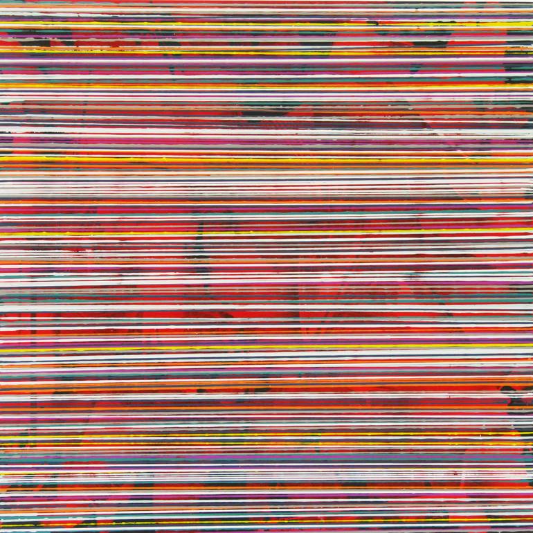 Magnus Björklund both works and expresses himself energetically in his artistry. An evolution of the painting exists that continuously aspires to optimize the power of an expression which fundamentally is minimalistic and concrete. The bright colors are central and they are laid frequently next to each other to an extent that is a hallmark for his painting. The painting balances between the abstract and the concrete. The separate and form-reducing, often linear, structures interact, meet and create abstract micro and macro worlds. It is easy to be moved by the work of Magnus Björklundh and it is from the interaction between objects, person and room that he also finds inspiration to evolve his painting. What is happening in the room and how do the paintings impact those present in the room? As the colors are vibrating and glowing between themselves, so do also the paintings affect the sphere in the room and between the observers. Magnus Björklundh does not only hand over paintings, but wants to follow up and note what happens when the art begins to impact. Based on these notes, he then takes inspiration for the development of his artistry. The painting thereby receives its changeable evolution, but with a distinct integrity and history. There is something interesting that happens in the borderland between the concrete and the abstract. There is something essentially human in that specific sphere. Maybe it is the meeting between our world of ideas and the nature’s unrestrained movement which is both challenged and reconciled? When one becomes a formalistic prison and the other runs between the fingers, something fundamentally human is captured in the intersection. That is where we operate and create the world in which we live. Magnus Björklundh seems to reify this human location through his painting/work. "art is the illusion of spontaneity"