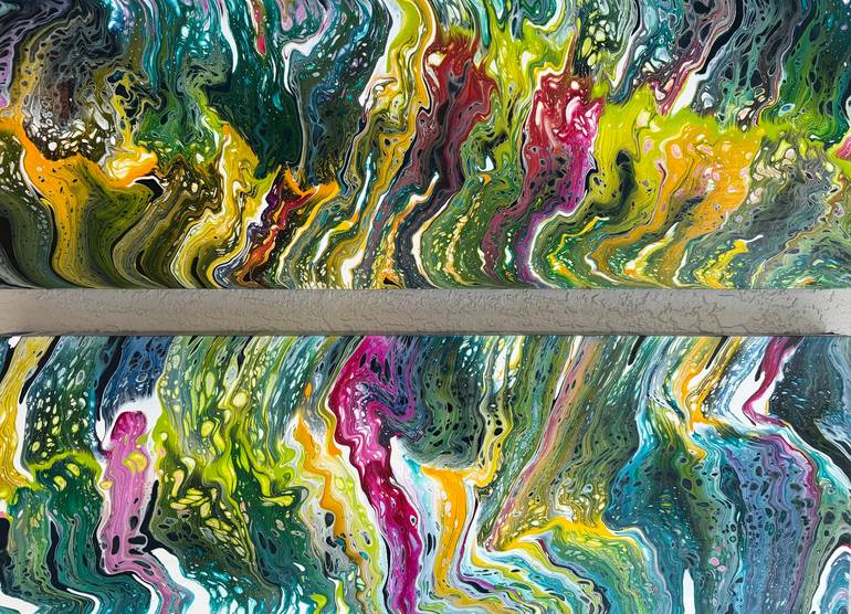Hide and Seek is a diptich that gives the viewer the opportunity to explore an endless number of people, animals, and creatures who come alive in vibrant colors. We all get to find our own new and interesting areas of the paintings every time we engage with them. The color captures you from across t...