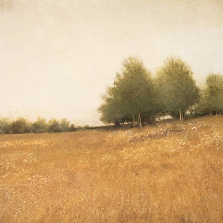 Hillside Trees 250314 is a contemporary impressionist landscape painting with rich texture and soft warm colors. Painted in acrylics, this painting is on gallery wrapped canvas and measures 40x40 inches. Ships ready to hang. -Don B