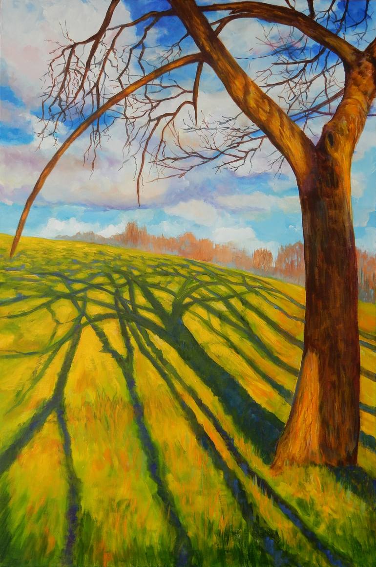 The photo that was the inspiration for this painting was taken at Hilltop Farm in Mt. Gilead, NC. I love the blustery-looking sky and the elongated shadows of late afternoon in early autumn. This is an acrylic painting sealed with a satin varnish. This is a one of a kind artwork. I always sign ...