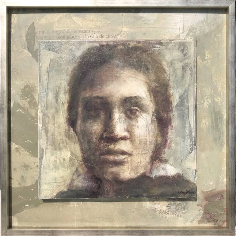 Esta obra está basada en el encuentro con Maite, en ella escribió la historia de esta mujer inmigrante en Chile y procedente de Perú quien me contó su historia mientras le hacía varias tomas fotográficas. Pertenece a la serie "Historia de un Inmigrante". Sobre madera van capas de acrílico y pintura ...