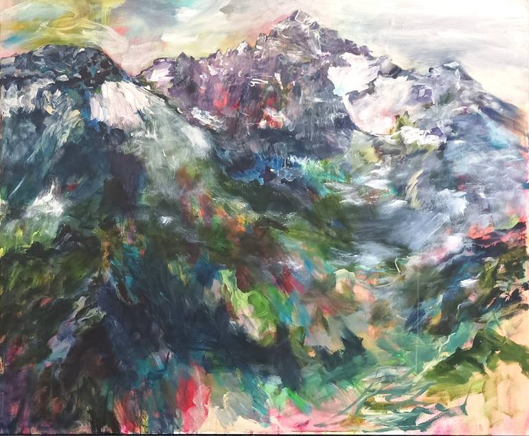 Hochvogel is a modern mountain painting (abstract landscape) inspired by a hike in the area I live in. It is a one-of-a-kind artwork done with acrylic colours. I painted on a deep canvas. The sides of the canvas are not painted. The work is ready to hang and signed on the back. 120 x 100 x 4,5 cm ...