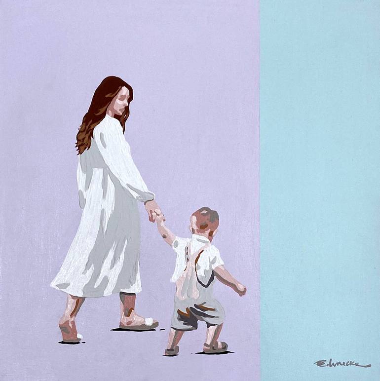 Different moments and people inspire my creations. I tend to "collect" different places, emotions, actions and situations by the action of painting them, and this way I can capture them in a unique way. This painting is inspired by the support and company of a mother towards her son. Original paint...