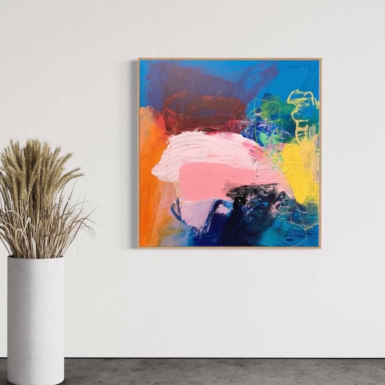 This abstract artwork was inspired by Charles' recent beachside holiday. It has been painted with many layers of professional quality acrylic paint and medium to give it depth and richness. It has been framed using a high quality Tasmanian oak. The painting has been signed on the back