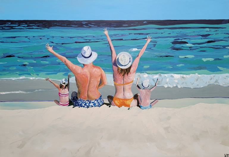 A week of summer in Collioure, southern France, in the German winter. The mood rises and the desire for more :). I used this momentum to paint a happy holiday family picture. Maybe my fun while painting will be transferred to the viewer! The edges are painted, the painting can be hung without addit...
