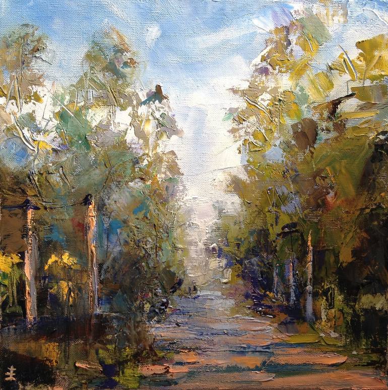 My original inspiration for this painting was the flowers on the side of the road, but the more I painted, the more I was engrossed by the movement of light from left to right, and as it receded into the distance. It's funny how an intense period of observation sometimes alters your original impress...