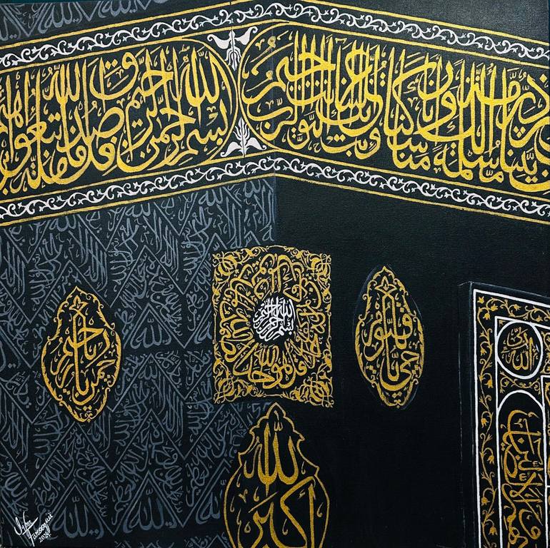 The Ghilaf e Kaaba, the black cloth covering the Kaaba, is a significant symbol in Islam. It is replaced annually during the Hajj pilgrimage, and its intricate embroidery and calligraphy reflect the artistry and devotion of the Muslim community. While the Ghilaf itself is not a painting, it has been...