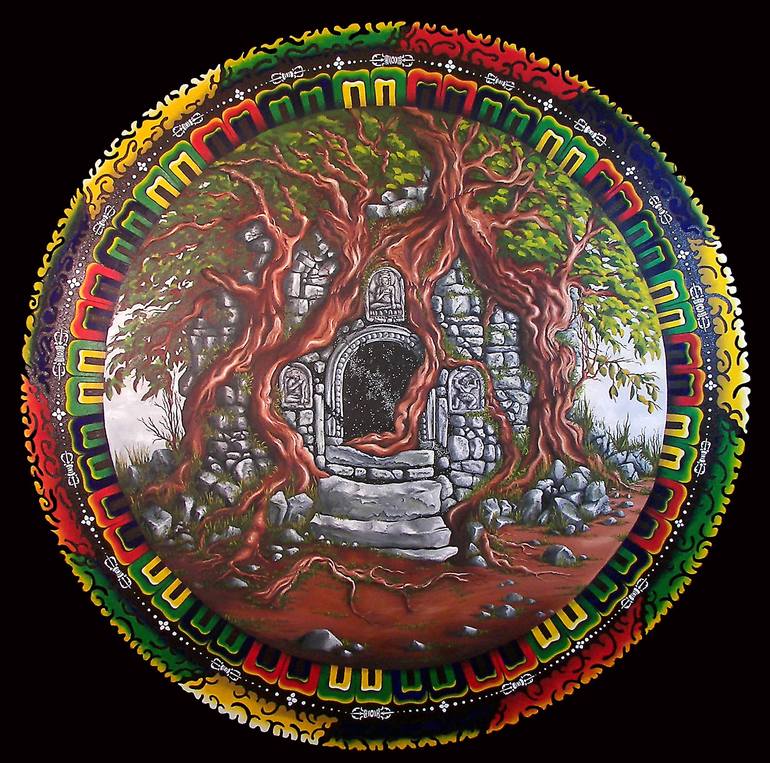 I painted this just after my mother died, adding her ashes into the paint. It's done in a traditional mandala style and represents the passing of the spirit.