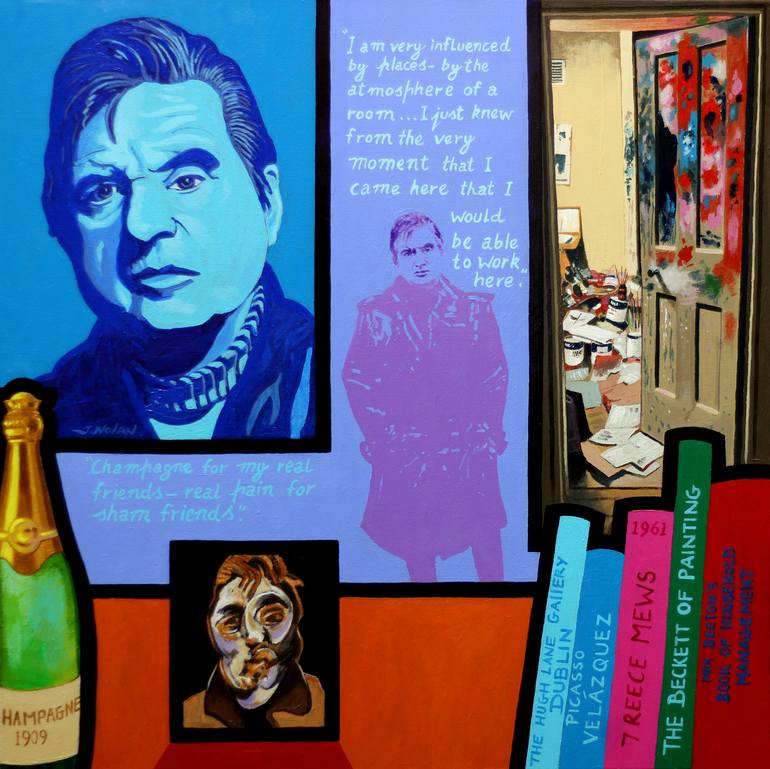 This piece is from my series of paintings which pays homage to the great masters. Homage to Francis Bacon The door into Bacon's studio is the focal point of this painting. The studio is permanently on show in The Hugh Lane Art Gallery, Dublin. I painted a ghost image of Bacon outside the studio doo...