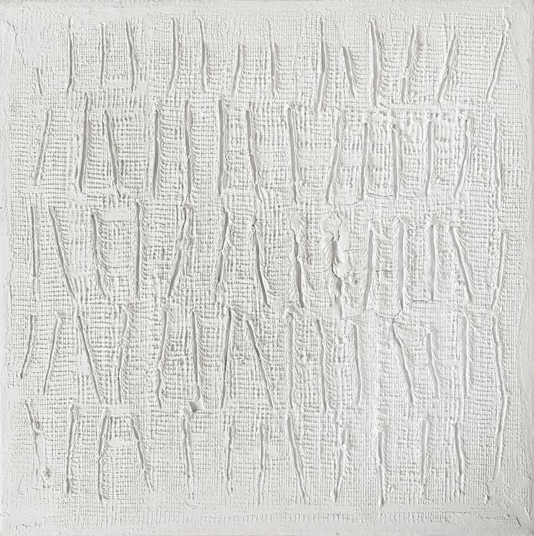 This is one of my family's favorite pieces and we have always had it displayed prominently wherever we were living at the time. I am heavily influenced by minimalism and this work is titled Homage to give respect to the great minimalists like Robert Ryman, Agnes Martin, and Lucio Fontana. The medium...