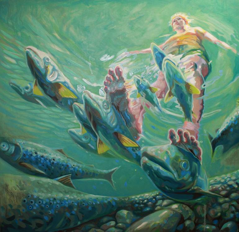 Amelia Alcock-White is a contemporary Canadian painter who lives and works in Vancouver, BC. Her work addresses the on-going debate surrounding the use of our coastal waterways. It explores how a single event can manifest multiple futures, some potentially destructive. What is beautiful and what is economically expedient are often two divergent paths. By highlighting the reflections on a body of water she attempt to contrast nature versus nature repurposed by humans and the far-reaching and often permanently damaging repercussions that can occur. The irregular ellipses of flattened colour, abstract patterns and highlighted surface reflections try to evoke a reverence for the mystery and importance of water, our natural world, its fragility and precariousness.