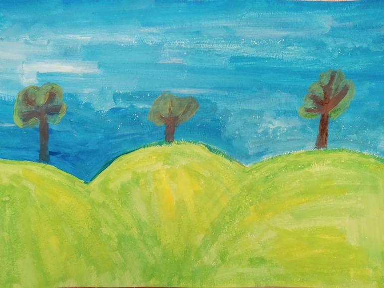 Acrylic on Paper Artwork by Moon This painting describes of homeland,hometown...When you was born,when you grew up.And one day if you are in other place,but your homeland always will be in your heart !