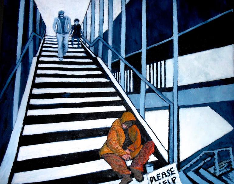This painting represents a condition in this country which is inexcusable. In the wealthiest country among nations many people are left behind. I can only think there but for a few different breaks this person could have been me.