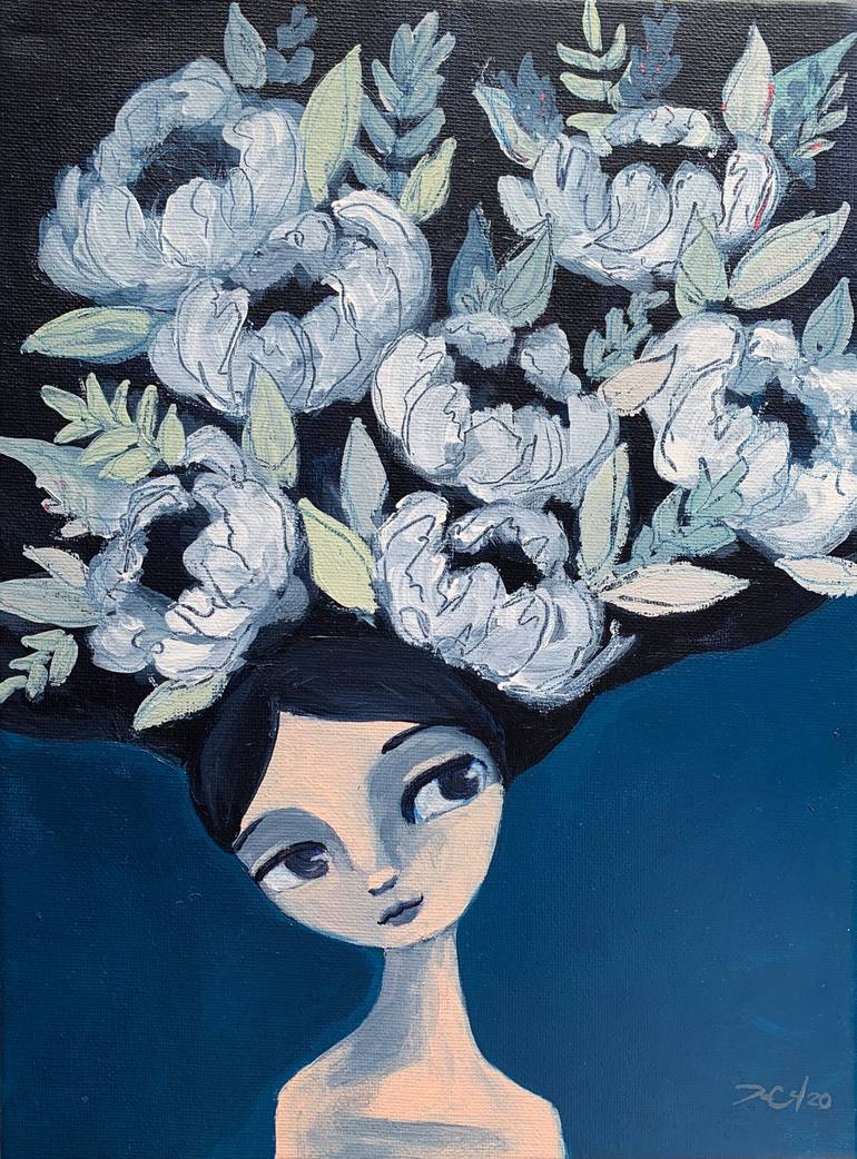 This portrait is part of my BLOOM Series. It’s an acrylic on gallery wrapped canvas, and the sides have been painted so if you wish you can hang it as is. Mock ups are referential only and may not be to scale. This painting is NOT framed, but if you wish for me to ship it to you framed for you for a...
