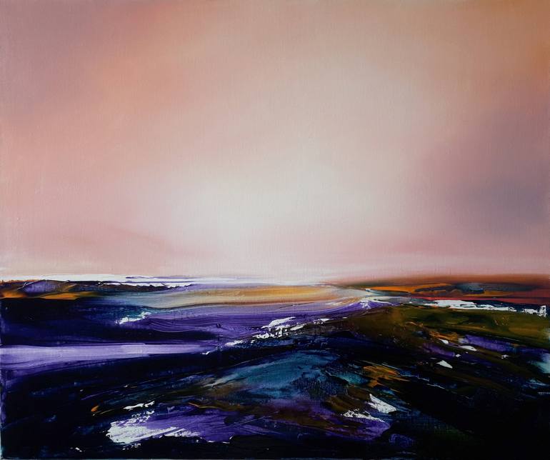 This more abstract canvas than the previous ones of the same name, still presents fragments of landscape. The sky is only an unreal color inhabited by a nascent glow. Only slight variations in color and light suggest atmospheric presence. The shapes, textures and colors of the floor produce an ambig...
