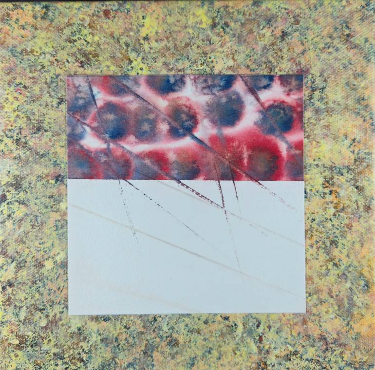 Distant horizons are the visual. Transparent watercolor in collage setting on acrylic studio canvas.