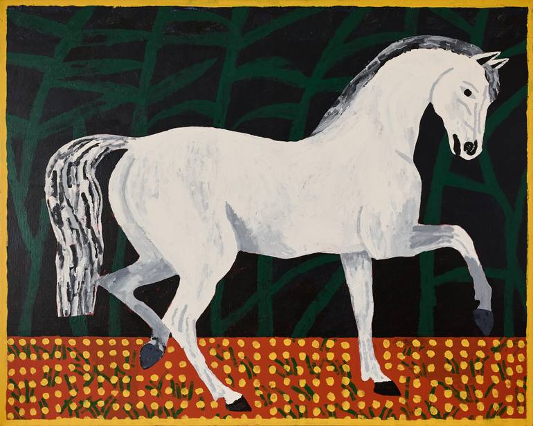 Acrylic paint on 12 oz canvas. Unstretched, ships in a tube. Painted surface measures 60x48 inches with 3.5 inches of extra canvas on each edge to account for stretching onto a 60x48 inch frame.