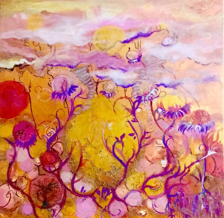 Surreal intense strangely nostalgic textured gold flake eclipsing the orbs A Psychedelic trip in Dr. Seuss's dreams